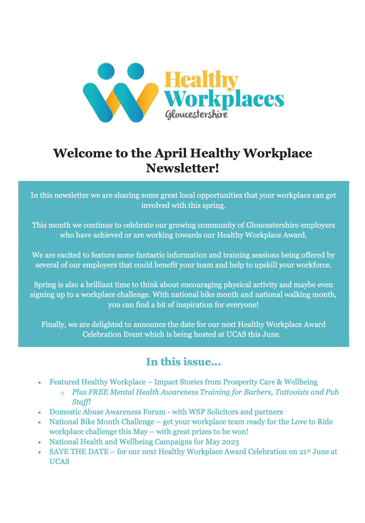 Healthy Workplaces - April 2023
